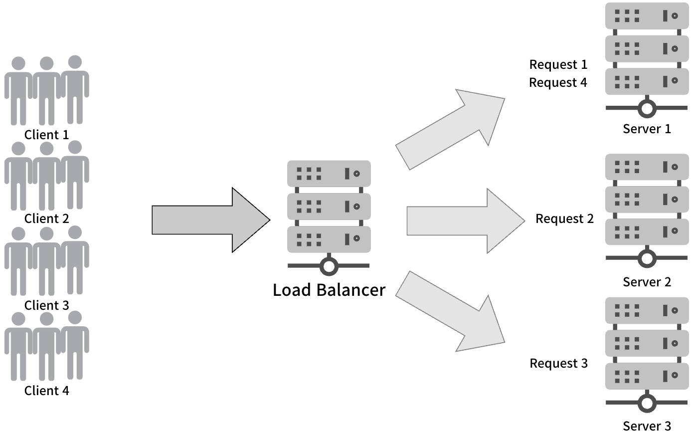 - 로드 밸런서는 미리 정의된 알고리즘에 따라 요청을 처리할 서버를 선택합니다.