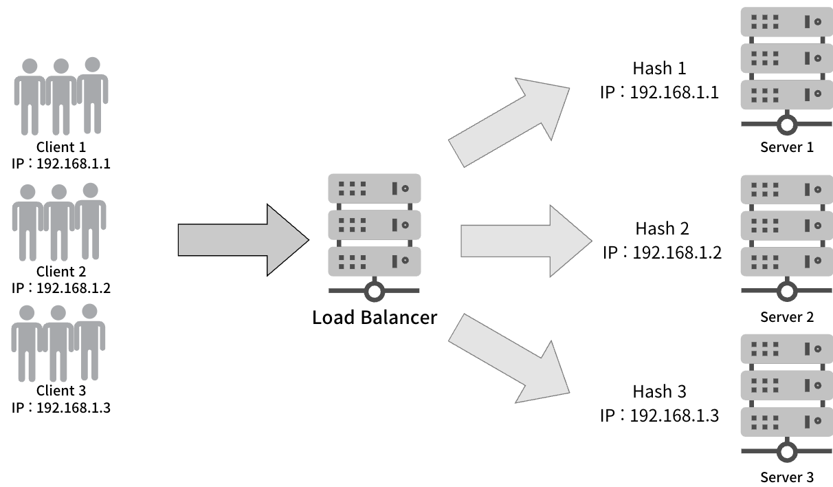 IP Hash 알고리즘은 클라이언트의 IP 주소를 해시하여 특정 서버에 매핑합니다. 이 방식은 같은 클라이언트의 요청이 항상 같은 서버로 전달되도록 보장합니다.