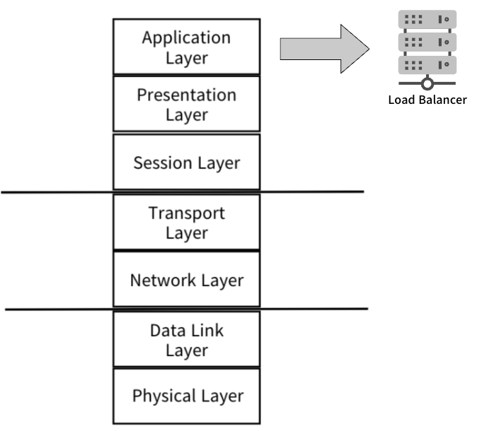 L7 로드밸런싱은 응용 계층(Application Layer)에서 작동합니다. 응용 계층은 HTTP/HTTPS, FTP, SMTP 등의 프로토콜을 포함하며, 트래픽의 내용, URL, 헤더, 쿠키 등을 분석하여 트래픽을 분산합니다.