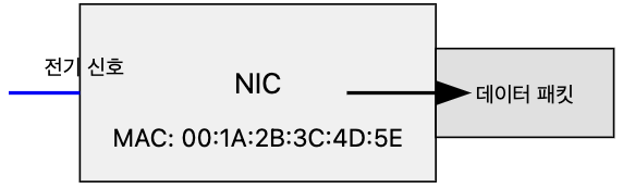 MAC 주소 확인: NIC(Network Interface Card)는 자신의 고유한 MAC 주소를 가지고 있습니다. NIC는 네트워크를 통해 들어오는 전기 신호를 수신하면 2계층에서 데이터 패킷으로 변환합니다.