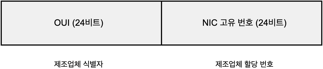 - 앞 24비트는 IEEE가 제조사에 할당하는 부분